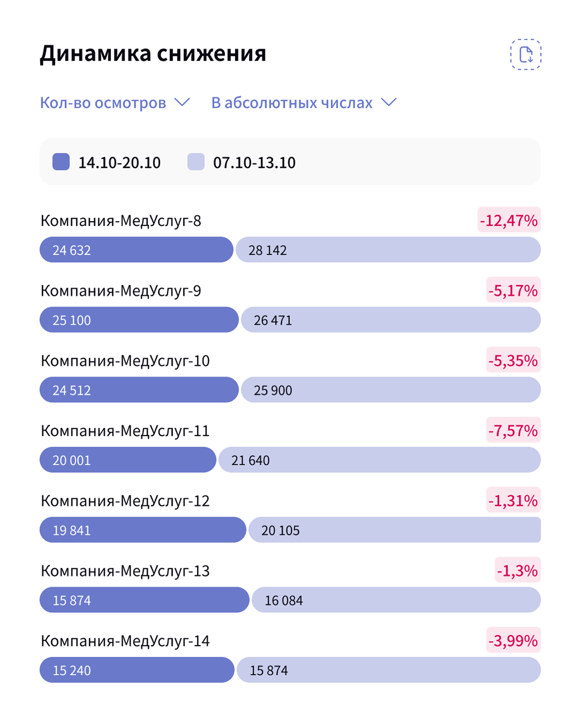 так и в асболютных числах. Так же можно выбрать сравнение по количеству осмотров