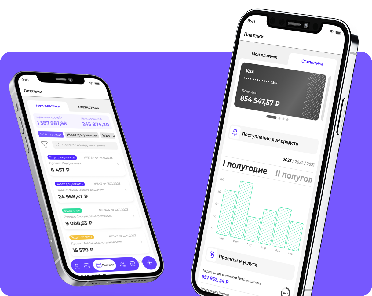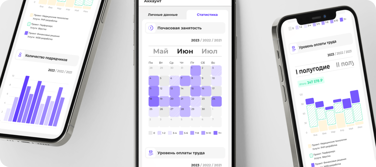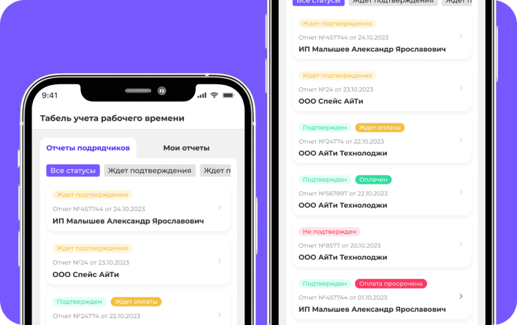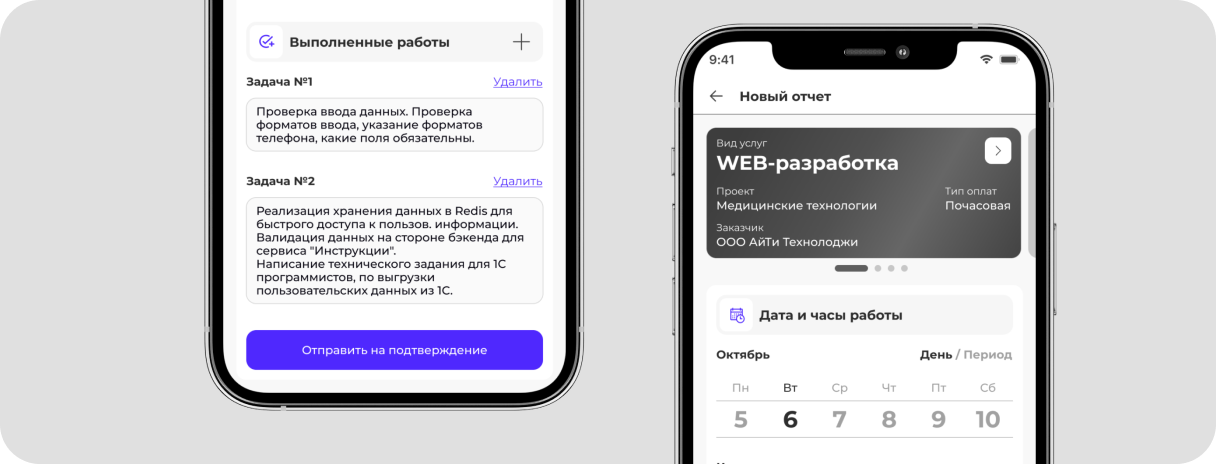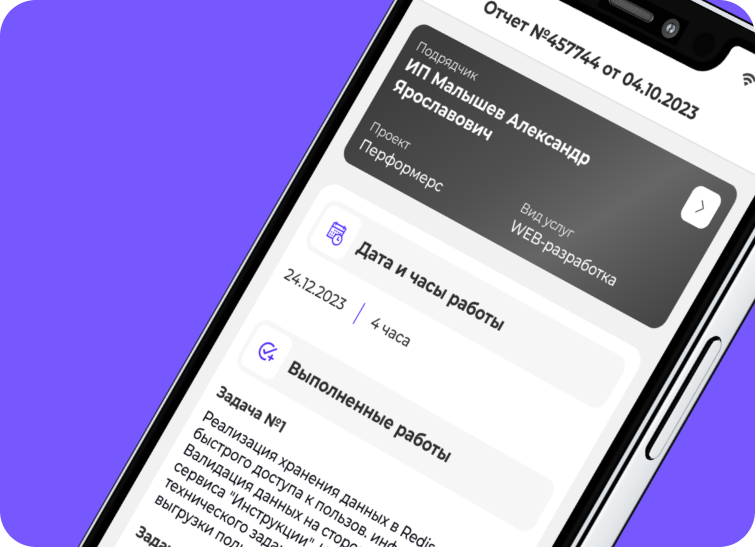 Продукт разработан как SaaS-сервис в десктопной и мобильной версии, и предоставляет возможность взаимодействия между подрядчиками и бухгалтерией.