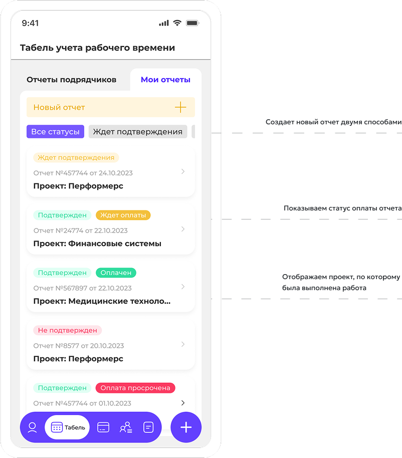 Отображаем список платежей, которые должен получить подрядчик. К некоторым платежам назначен пакет документов, отображаем эту информацию в статусе платежа.